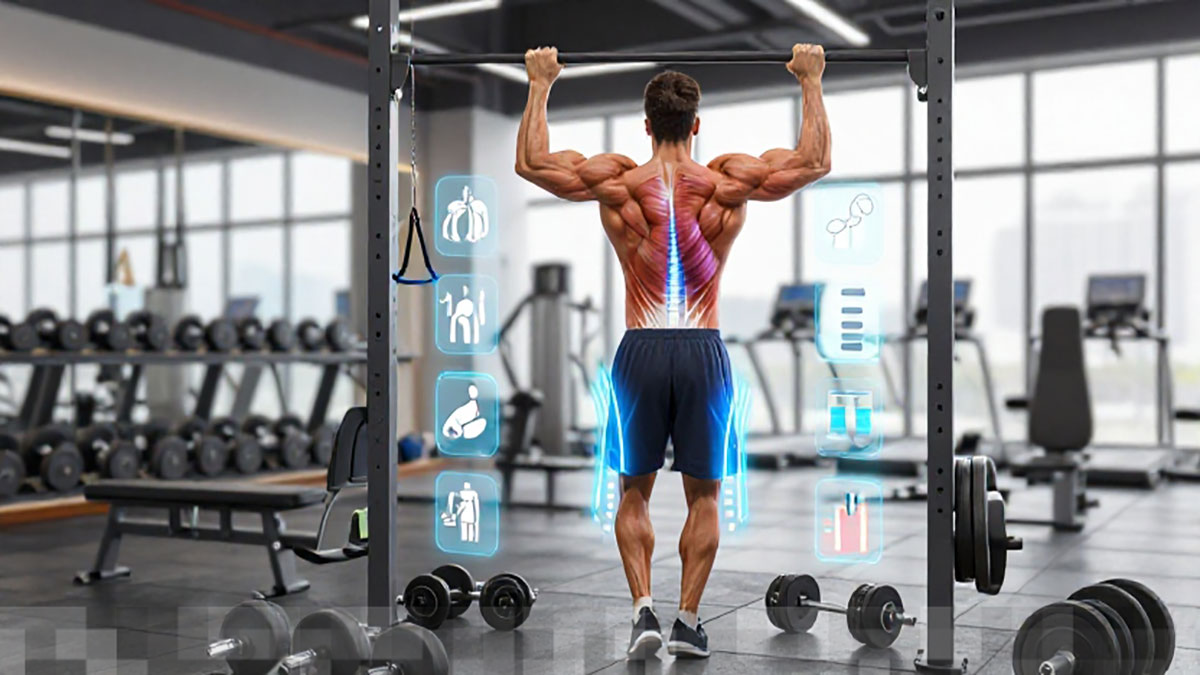 - Pull-up atau Chin-up: Latihan ini sangat baik untuk melatih otot latissimus dorsi dan trapezius.